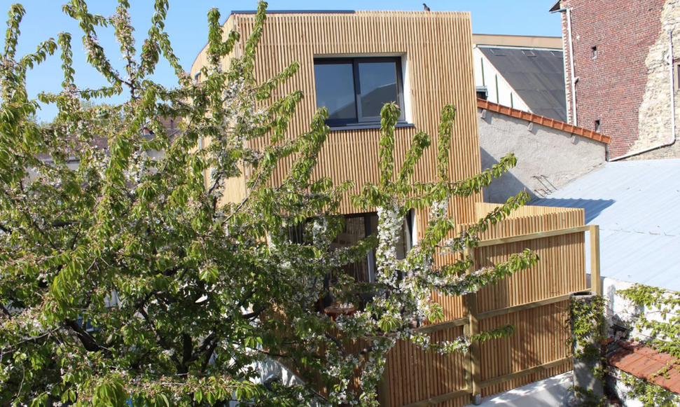 Bardage Faux claire voie class 3 coloris naturel -chantier Arcueil-94